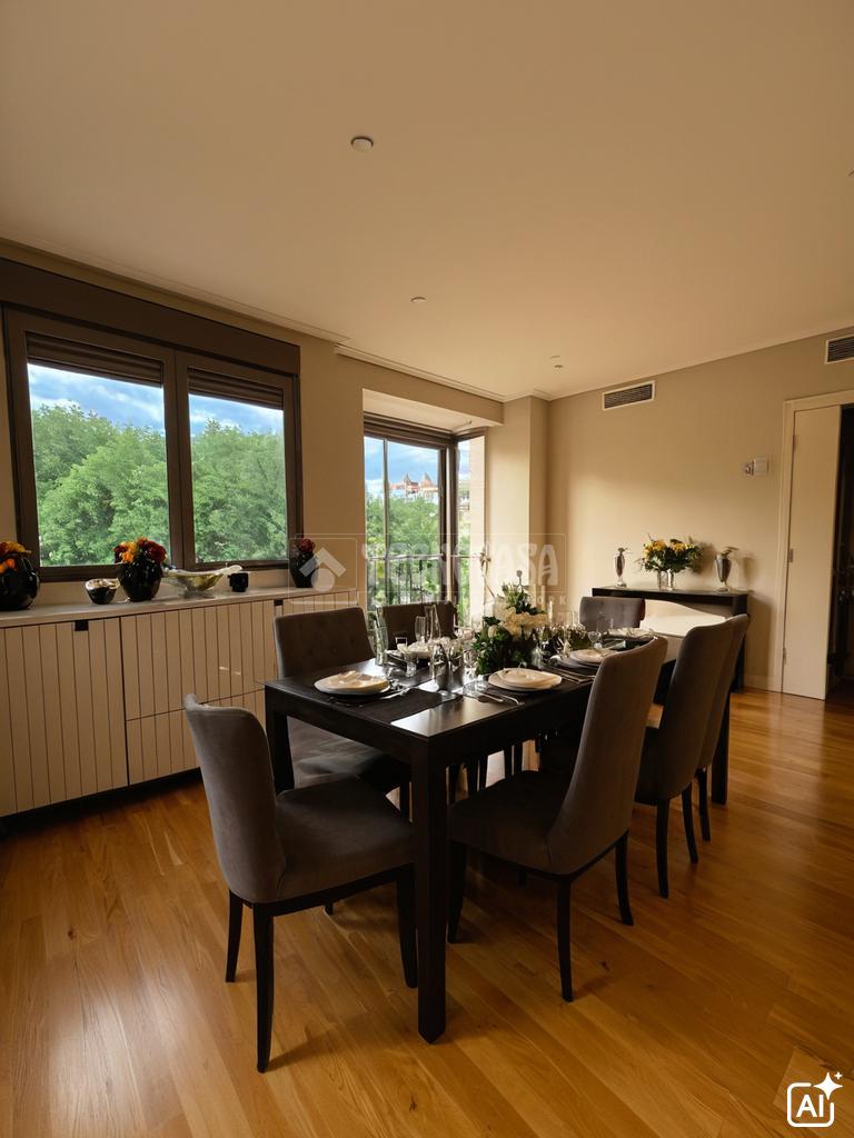 La cocina office, completamente equipada y con acceso a una terraza tendedero, es el sueño de cualquier amante de la gastronomía. Además, cuenta con ventanas climalit que garantizan un aislamiento acústico y térmico excepcional. La vivienda está equipada con aire acondicionado por conducto y calefacción individual a gas natural, asegurando un ambiente agradable durante todo el año.